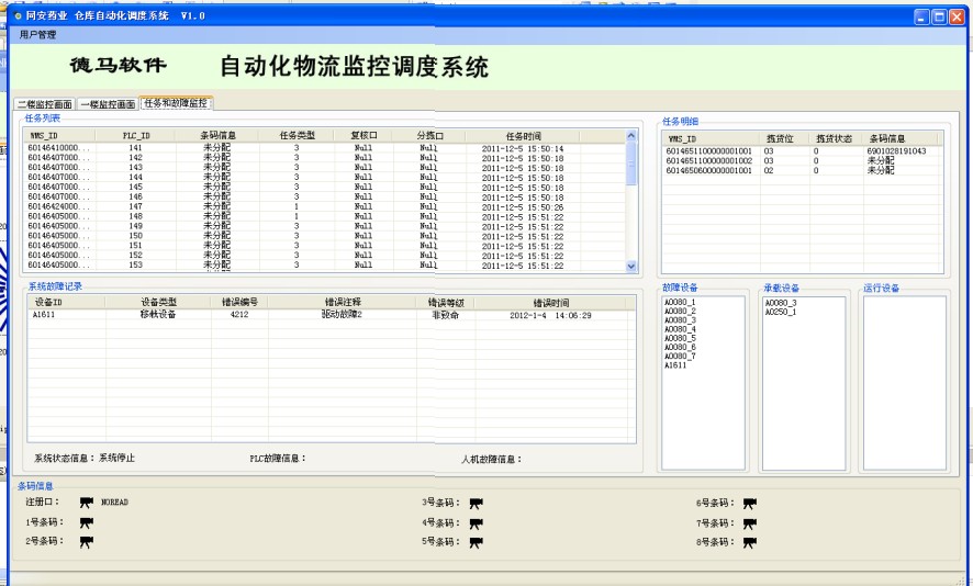 【WCS】湖南同安药业WCS系统软件界面