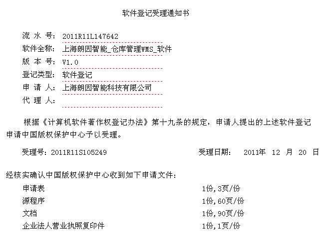 上海朗因智能_仓库管理WMS_软件 获中国版权保护中心登记认证