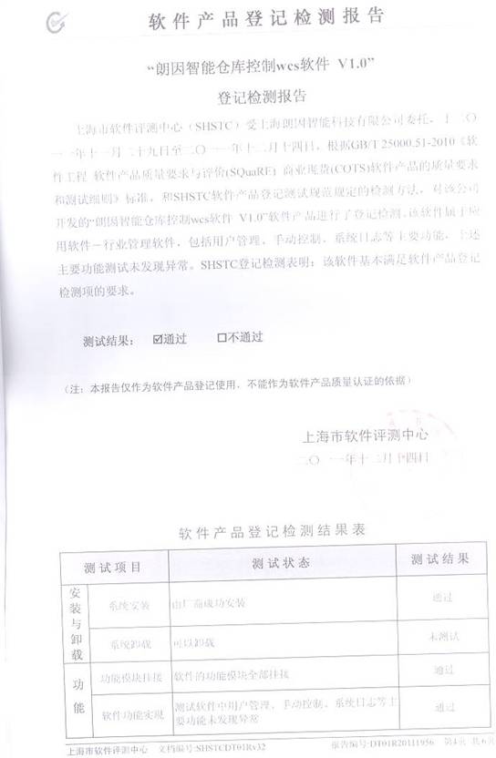 热烈祝贺上海朗因智能_仓库控制WCS_软件 通过上海市软件评测中心测试
